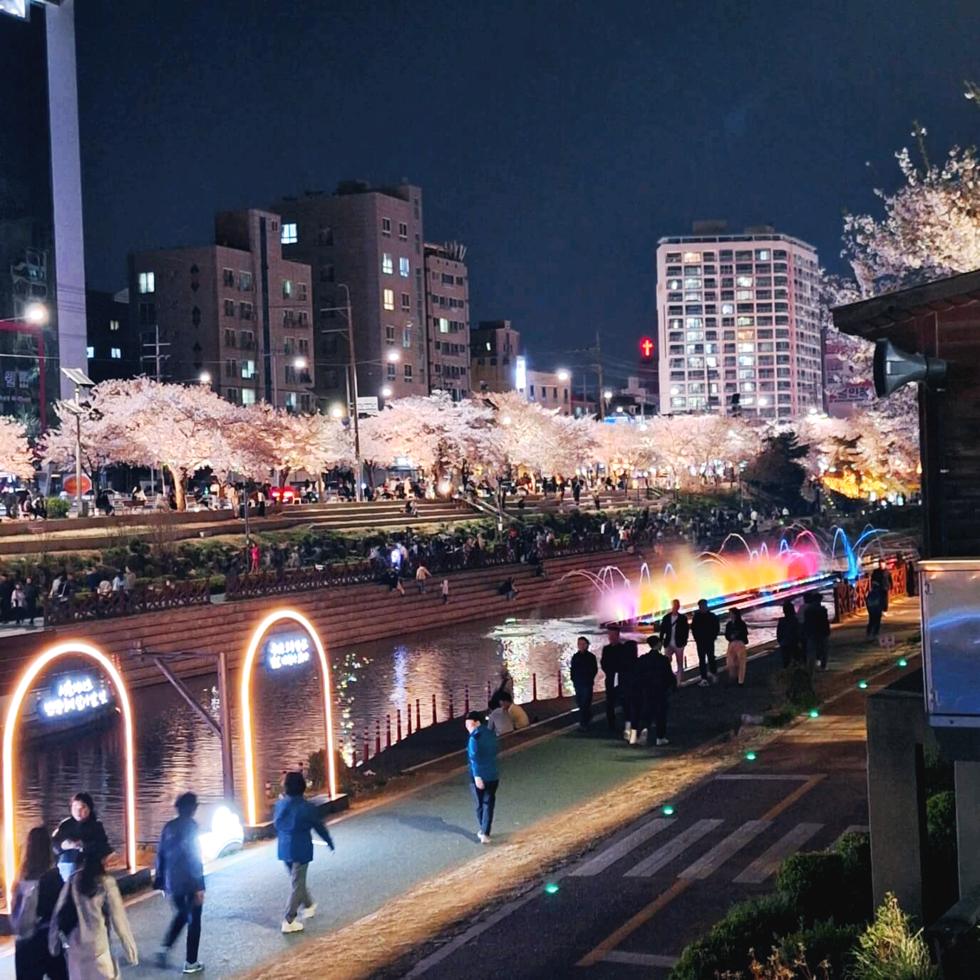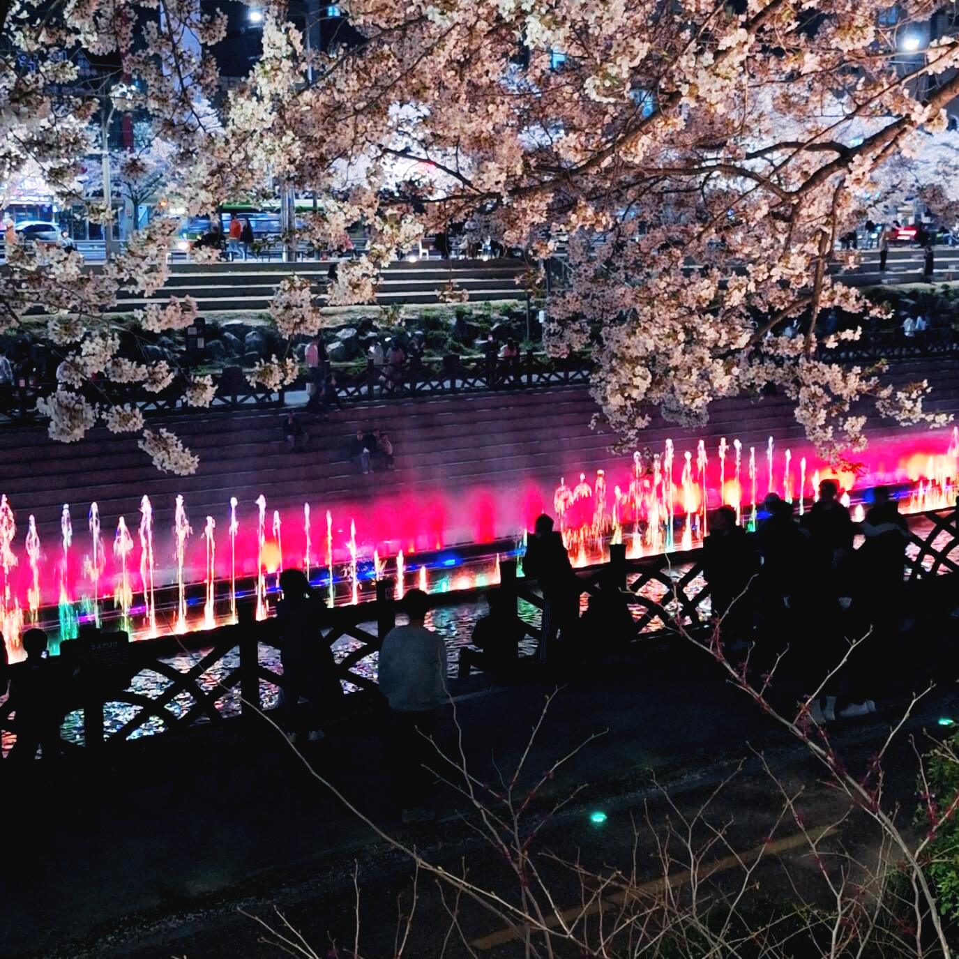 오색빛과 🌸벚꽃이 어우러진 밤 풍경은 정말 꿀야경입니다. 그야말로 야경멋집, 핫플레이스, 사진멋집으로 강추합니다. 특히, 응암역 근방 야경 오색빛깔 분수쇼는 압권이죠. 주변에 맛집도 즐비하고 그야말로 불야성입니다. 야경과 함께 사진을 찍어보세요. 그야말로 감탄사를 연발하게 되실 겁니다. 와우 와우 와우👍👍👍
